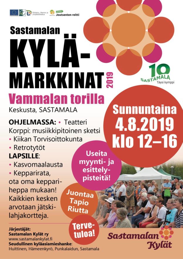 Sastamalan kylämarkkinat su 4.8.2019 klo 12-16 Paas poiketen Vammalan torille elokuun ensimmäisenä sunnuntaina! Myös Kaukolan kyläseura on mukana.
