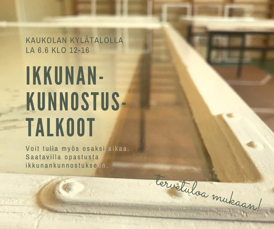 Lauantaina 6.6 IKKUNANKUNNOSTUSTALKOOT kylätalolla klo 12-16, tervetuloa mukaan!