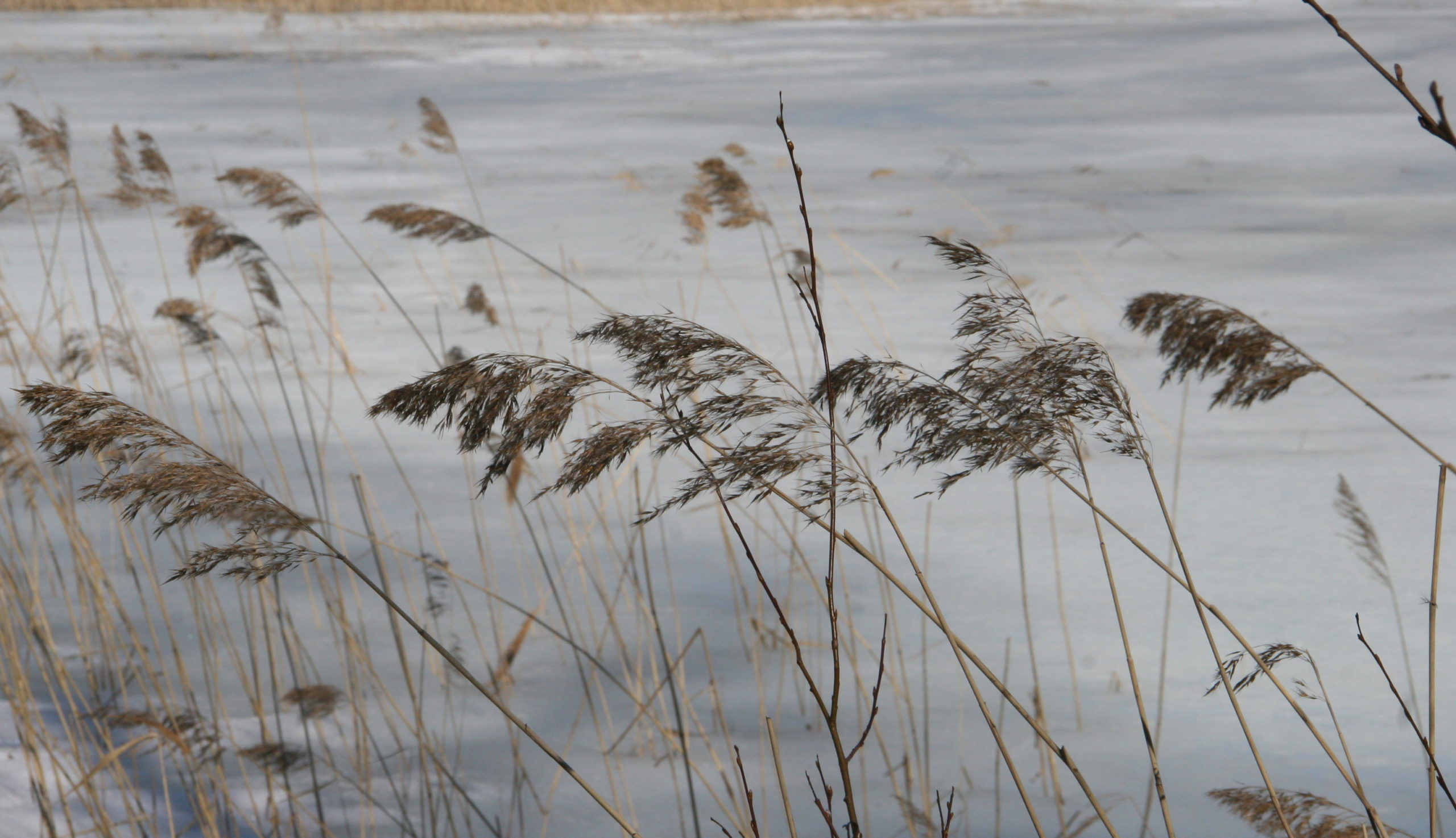 Kuten olettaa sopikin, oli järvi jo saanut jääpeitteen. Yhtään pilkkijää ei vielä ollut näkösällä. Mutta lumisten puitten ja huurteisten ruovikkojen rajaama järvimaisema oli sinänsä kaunis näky alkutalvisessa sinerryksessään. Vielä oli pakkasta sen verran, että kevyt lumi pysyi puitten oksilla saaden ne näyttämään huomattavasti itseään paksummilta.
