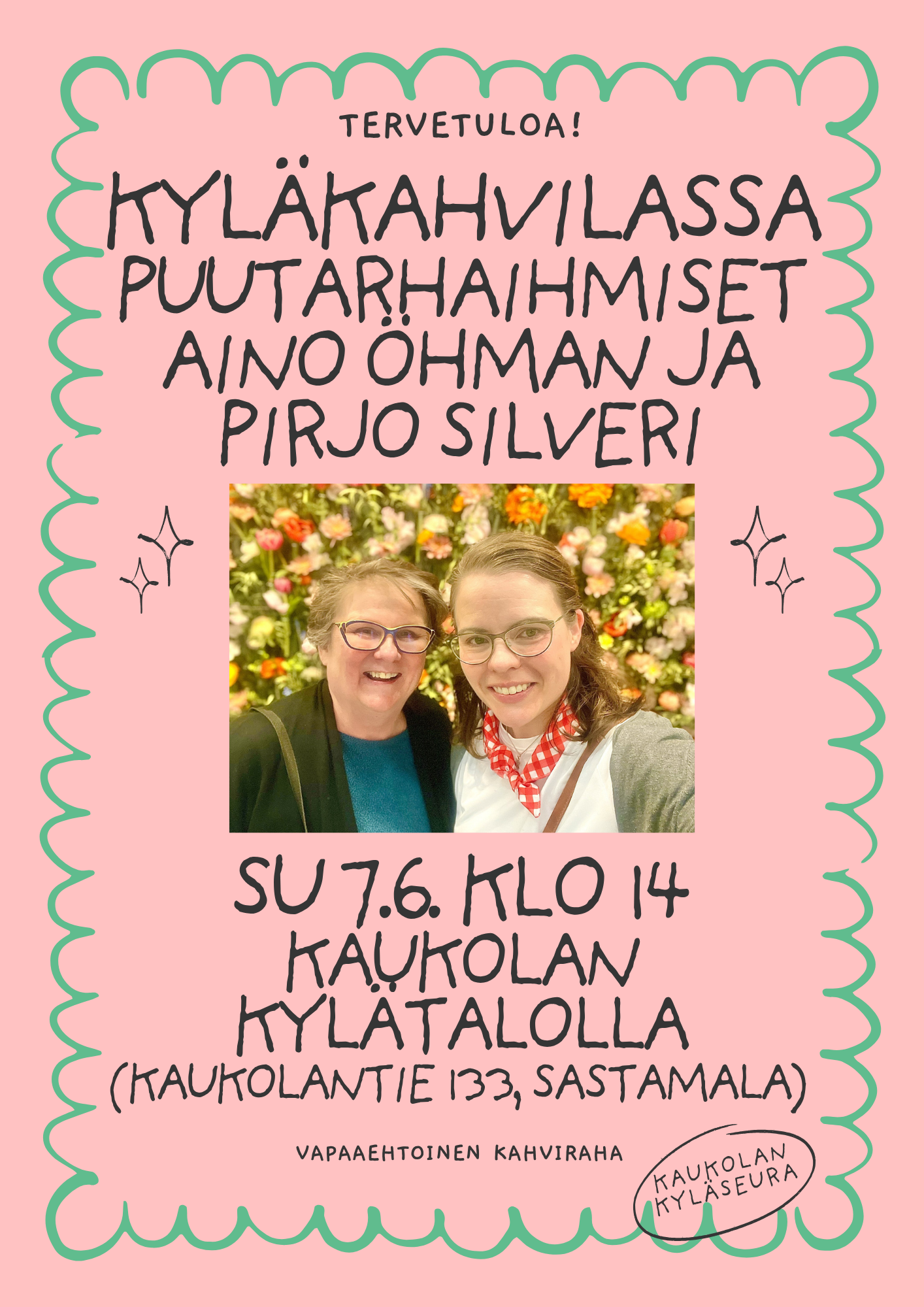 Kesäkuun kyläkahvilassa su 7.6. klo 14 saamme vieraaksi Puutarhaihmiset eli vanhoista puutarhoista tietokirjan kirjoittaneet Aino Öhmanin ja Pirjo Silverin kertomaan teoksen teemoista.