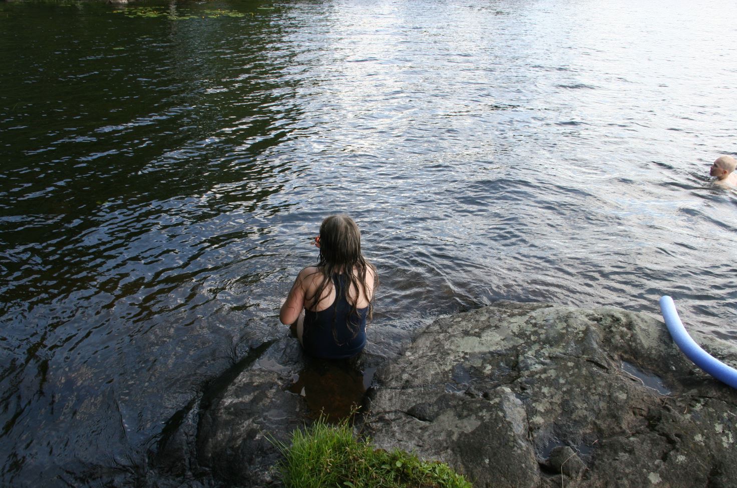 Neljännellä ja samaĺla viimeisellä kerralla vesi oli jo selvästi viileämpää, mitä edellisillä kerroilla. Ei se haitannut vähääkään, sillä vieläkin se oli hyvinkin lännintä ja aurinkokin paistoi taas lähes tyyneen järven pintaan. Oli oikein hyvät olosuhteet päättää tämä vesiliikunajakso, varmasti kaikille mukana olleille jäi tästä hyvinkin positiivinen muisto. Ensi vuonna sitten taas uudestaan. Ja onnistuneen jakson päätteeksi voi vaikka oikaista hetkiseksi ja antaa silmän ja mielen levätä näkyvässä maisemassa.